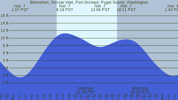 Tidal Heights at Bremerton, Sinclair Inlet, Port Orchard, Puget Sound, Washington