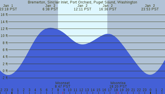 Tidal Heights at Bremerton, Sinclair Inlet, Port Orchard, Puget Sound, Washington