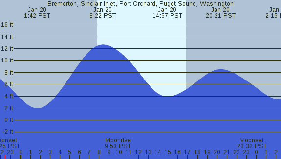 Tidal Heights at Bremerton, Sinclair Inlet, Port Orchard, Puget Sound, Washington