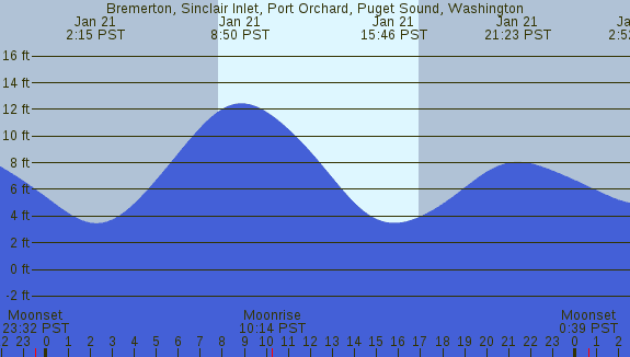 Tidal Heights at Bremerton, Sinclair Inlet, Port Orchard, Puget Sound, Washington