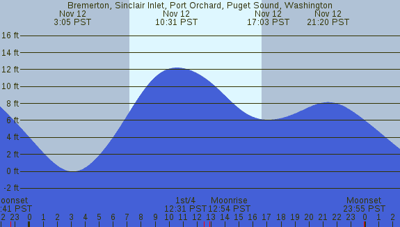 Tidal Heights at Bremerton, Sinclair Inlet, Port Orchard, Puget Sound, Washington