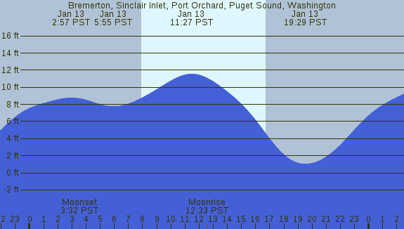 Tidal Heights at Bremerton, Sinclair Inlet, Port Orchard, Puget Sound, Washington