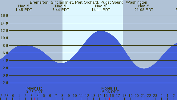Tidal Heights at Bremerton, Sinclair Inlet, Port Orchard, Puget Sound, Washington