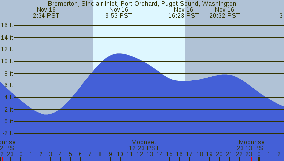 Tidal Heights at Bremerton, Sinclair Inlet, Port Orchard, Puget Sound, Washington