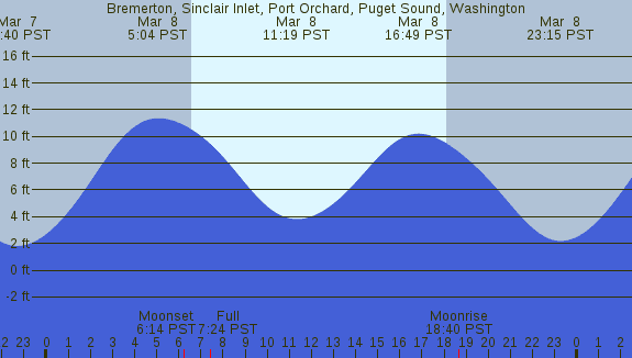 Tidal Heights at Bremerton, Sinclair Inlet, Port Orchard, Puget Sound, Washington