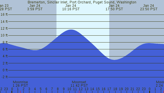Tidal Heights at Bremerton, Sinclair Inlet, Port Orchard, Puget Sound, Washington