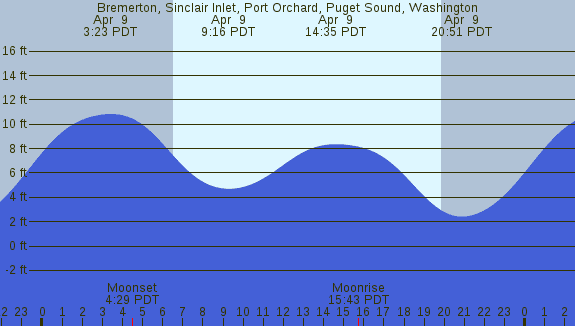 Tidal Heights at Bremerton, Sinclair Inlet, Port Orchard, Puget Sound, Washington