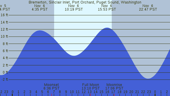 Tidal Heights at Bremerton, Sinclair Inlet, Port Orchard, Puget Sound, Washington