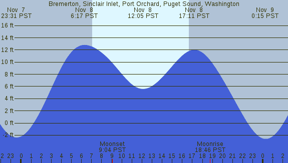 Tidal Heights at Bremerton, Sinclair Inlet, Port Orchard, Puget Sound, Washington