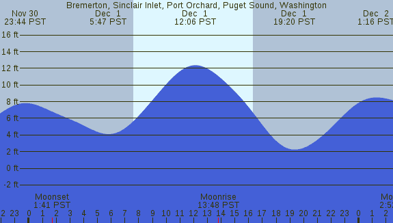 Tidal Heights at Bremerton, Sinclair Inlet, Port Orchard, Puget Sound, Washington