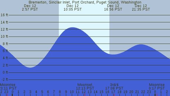 Tidal Heights at Bremerton, Sinclair Inlet, Port Orchard, Puget Sound, Washington