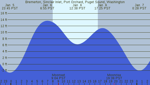 Tidal Heights at Bremerton, Sinclair Inlet, Port Orchard, Puget Sound, Washington