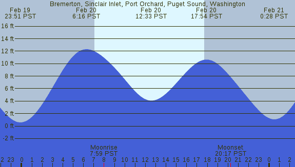 Tidal Heights at Bremerton, Sinclair Inlet, Port Orchard, Puget Sound, Washington