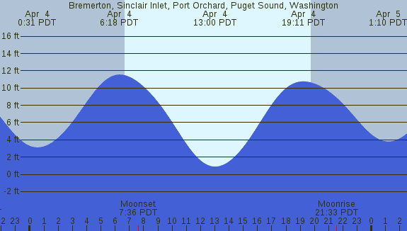 Tidal Heights at Bremerton, Sinclair Inlet, Port Orchard, Puget Sound, Washington