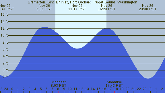 Tidal Heights at Bremerton, Sinclair Inlet, Port Orchard, Puget Sound, Washington