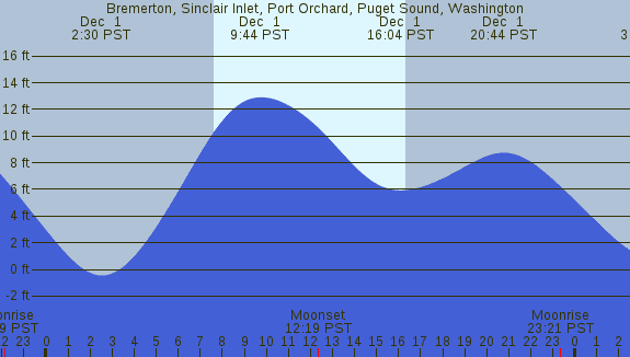 Tidal Heights at Bremerton, Sinclair Inlet, Port Orchard, Puget Sound, Washington