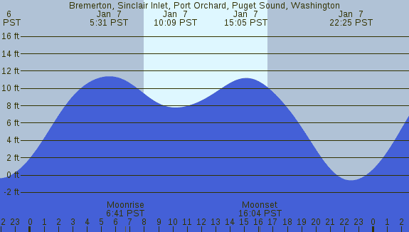 Tidal Heights at Bremerton, Sinclair Inlet, Port Orchard, Puget Sound, Washington