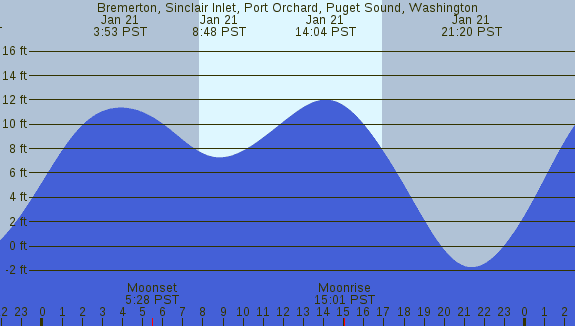 Tidal Heights at Bremerton, Sinclair Inlet, Port Orchard, Puget Sound, Washington