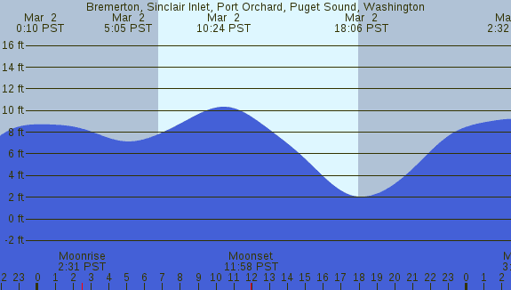Tidal Heights at Bremerton, Sinclair Inlet, Port Orchard, Puget Sound, Washington