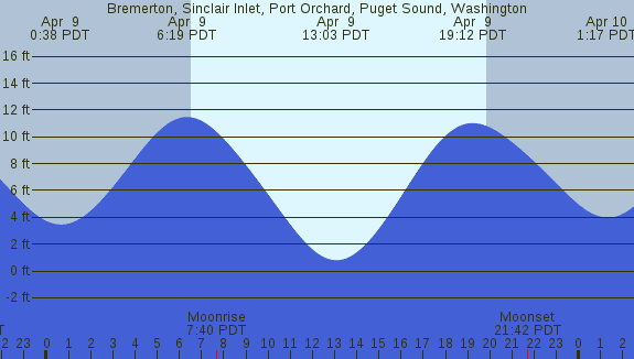 Tidal Heights at Bremerton, Sinclair Inlet, Port Orchard, Puget Sound, Washington