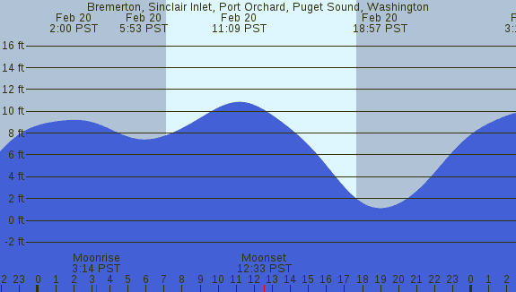 Tidal Heights at Bremerton, Sinclair Inlet, Port Orchard, Puget Sound, Washington