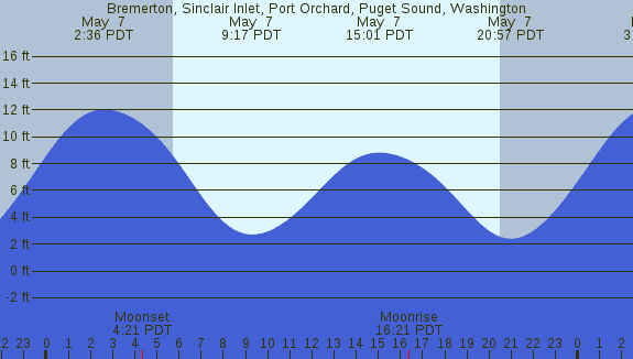 Tidal Heights at Bremerton, Sinclair Inlet, Port Orchard, Puget Sound, Washington