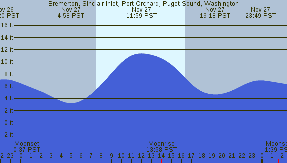 Tidal Heights at Bremerton, Sinclair Inlet, Port Orchard, Puget Sound, Washington