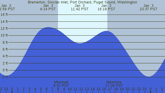 Tidal Heights at Bremerton, Sinclair Inlet, Port Orchard, Puget Sound, Washington