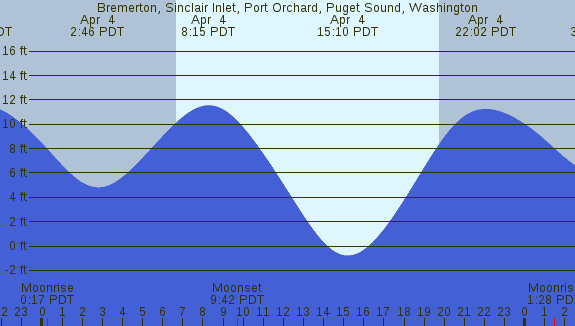Tidal Heights at Bremerton, Sinclair Inlet, Port Orchard, Puget Sound, Washington