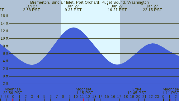 Tidal Heights at Bremerton, Sinclair Inlet, Port Orchard, Puget Sound, Washington