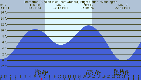 Tidal Heights at Bremerton, Sinclair Inlet, Port Orchard, Puget Sound, Washington