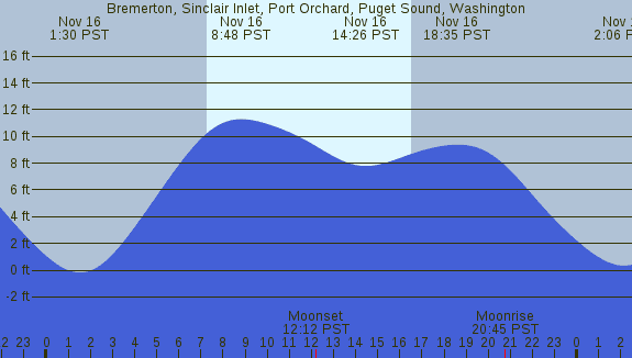 Tidal Heights at Bremerton, Sinclair Inlet, Port Orchard, Puget Sound, Washington