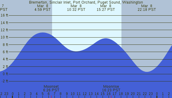 Tidal Heights at Bremerton, Sinclair Inlet, Port Orchard, Puget Sound, Washington