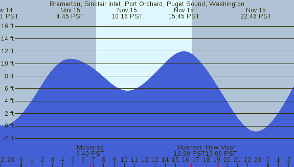 Tidal Heights at Bremerton, Sinclair Inlet, Port Orchard, Puget Sound, Washington
