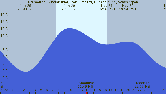 Tidal Heights at Bremerton, Sinclair Inlet, Port Orchard, Puget Sound, Washington