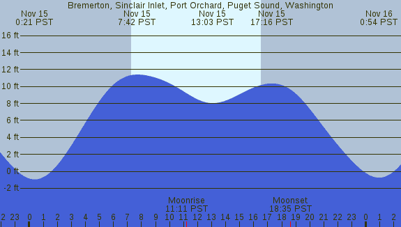 Tidal Heights at Bremerton, Sinclair Inlet, Port Orchard, Puget Sound, Washington