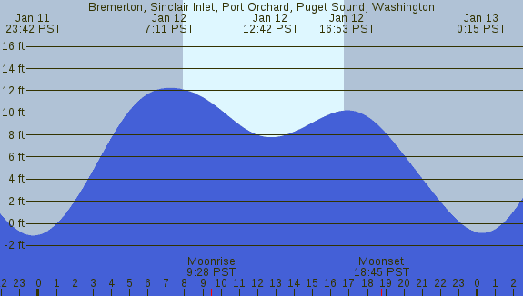 Tidal Heights at Bremerton, Sinclair Inlet, Port Orchard, Puget Sound, Washington