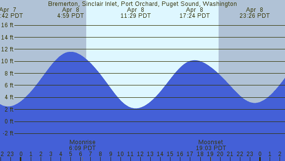 Tidal Heights at Bremerton, Sinclair Inlet, Port Orchard, Puget Sound, Washington