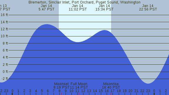 Tidal Heights at Bremerton, Sinclair Inlet, Port Orchard, Puget Sound, Washington