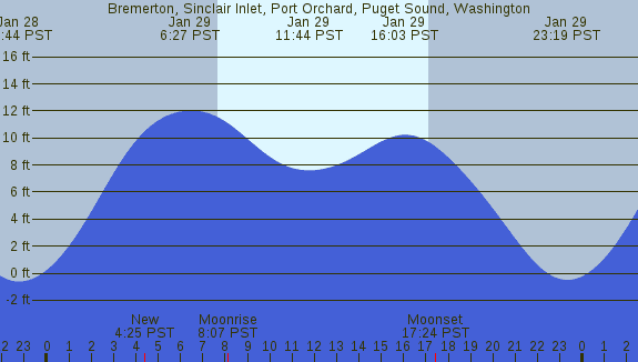 Tidal Heights at Bremerton, Sinclair Inlet, Port Orchard, Puget Sound, Washington