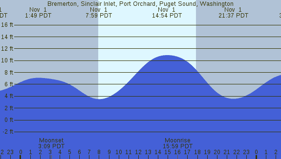 Tidal Heights at Bremerton, Sinclair Inlet, Port Orchard, Puget Sound, Washington