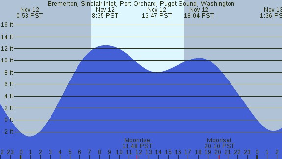 Tidal Heights at Bremerton, Sinclair Inlet, Port Orchard, Puget Sound, Washington