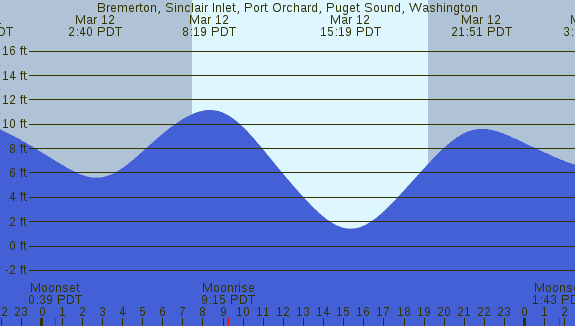 Tidal Heights at Bremerton, Sinclair Inlet, Port Orchard, Puget Sound, Washington