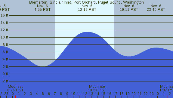 Tidal Heights at Bremerton, Sinclair Inlet, Port Orchard, Puget Sound, Washington