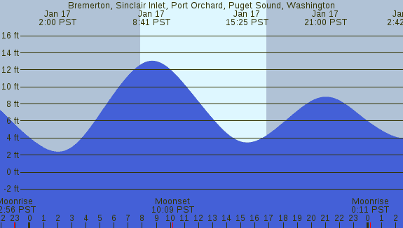 Tidal Heights at Bremerton, Sinclair Inlet, Port Orchard, Puget Sound, Washington