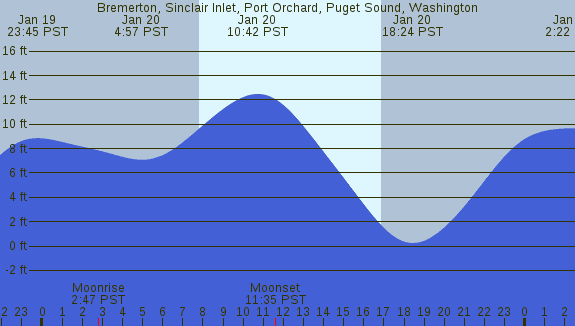 Tidal Heights at Bremerton, Sinclair Inlet, Port Orchard, Puget Sound, Washington
