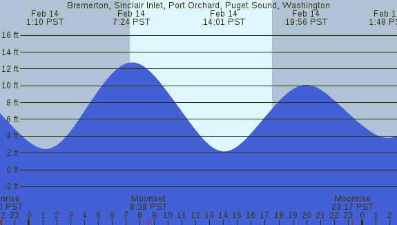 Tidal Heights at Bremerton, Sinclair Inlet, Port Orchard, Puget Sound, Washington