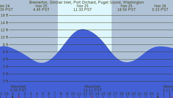 Tidal Heights at Bremerton, Sinclair Inlet, Port Orchard, Puget Sound, Washington