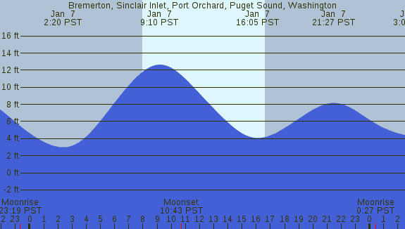 Tidal Heights at Bremerton, Sinclair Inlet, Port Orchard, Puget Sound, Washington