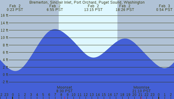 Tidal Heights at Bremerton, Sinclair Inlet, Port Orchard, Puget Sound, Washington